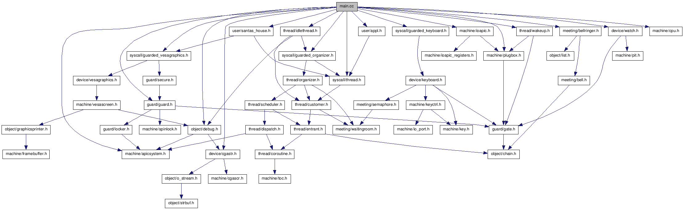 Include-Abhängigkeitsdiagramm für main.cc: