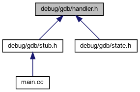 Debug-Unterbrechungsbehandlungsroutine des Systems, analog zu guardian . Aufruf dieser Funktion durch den Assembler Teil der Debug- Unterbrechungsbehandlung (dbg_irq_entry_* in der debug/gbd/handler.asm) – diese Routinen müssen zuvor mittels GDB_Stub::install_handler installiert werden. Nach dem vorbereiten der Daten wird GDB_Stub::handle aufgerufen, welches mit dem Host über die serielle Schnittstelle kommuniziert.